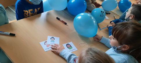 W tym dniu drugoklasiści zostali zaproszeni do bibliotecznej wioski smerfów, gdzie zostali powitani piosenką z bajki o smerfach. Zajęcia rozpoczęły się od narysowania przez uczniów na niebieskich balonikach minek, wyrażających ich samopoczucie. Wszystkie dzieci były w doskonałym nastroju, co w zasadzie nie dziwi, bo w wiosce smerfów nikt nie może mieć złego humoru.